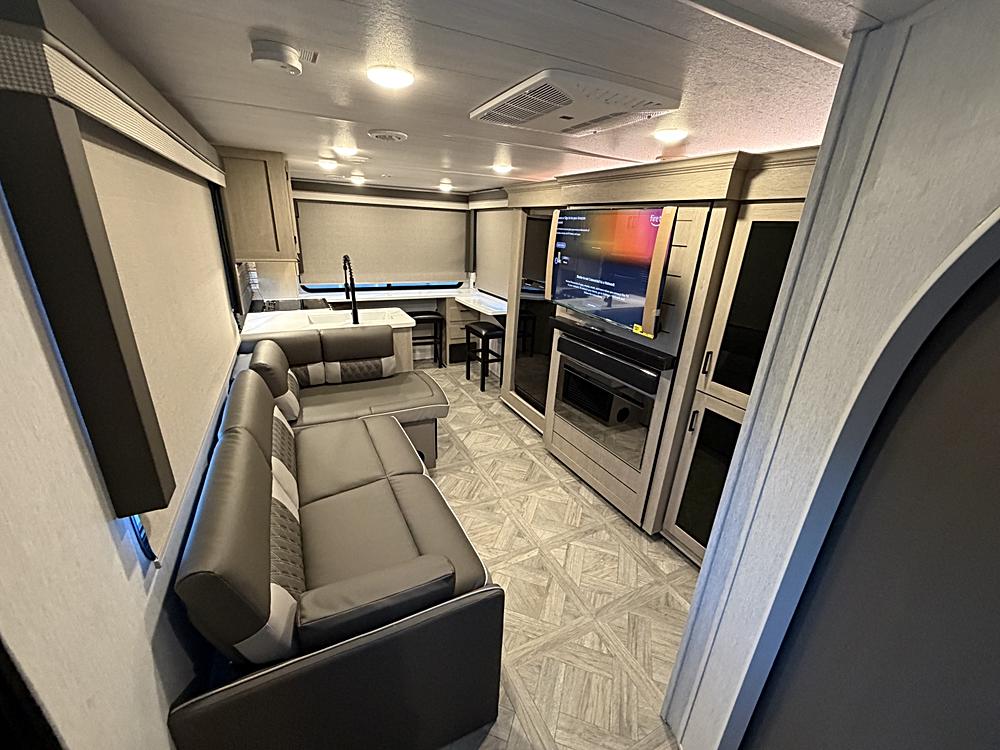 *** TAX REFUND SALE ***Tons of space in this Family oriented rear living camper!!! Hidden Bunkhouse behind TV fireplace King Size Versa…